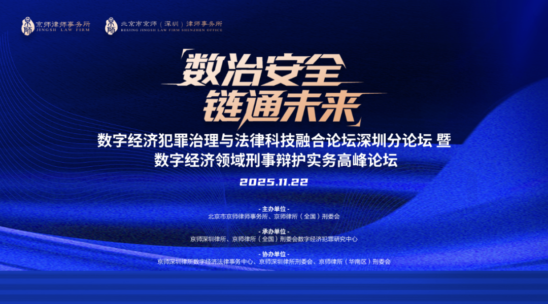 深圳,作为中国的创新高地,这里既是数字经济的浪潮前沿所在,也是法治文明熠熠生辉的热土。2025年11月22日,“数治安全·链通未来”数字经济犯罪治理与法律科技融合论坛之深圳分论坛暨数字经济领域刑事辩护实务高峰论坛在京师深圳律师事务所成功举办。本次论坛由北京市京师律师事务所、京师律所(全国)刑委会联合主办,京师深圳律所、京师律所(全国)刑委会数字经济犯罪研究中心合力承办,并得到京师深圳律所数字经济法律事务中心、京师深圳律所刑委会、京师律所(华南区)刑委会的协办支持。