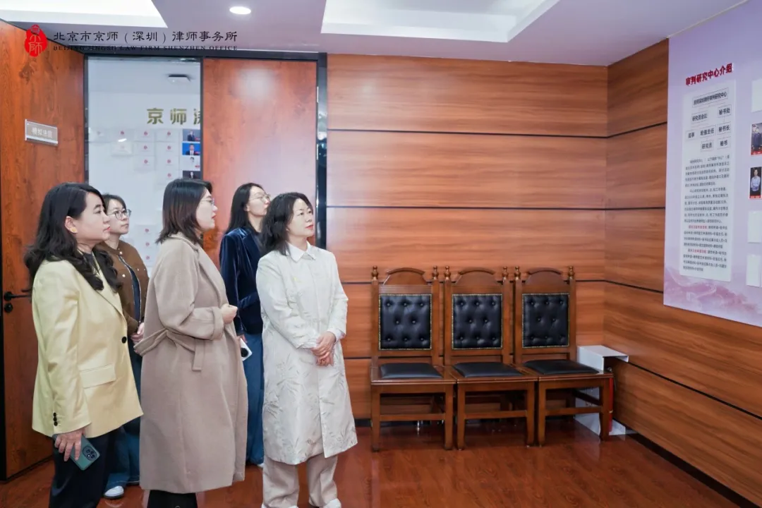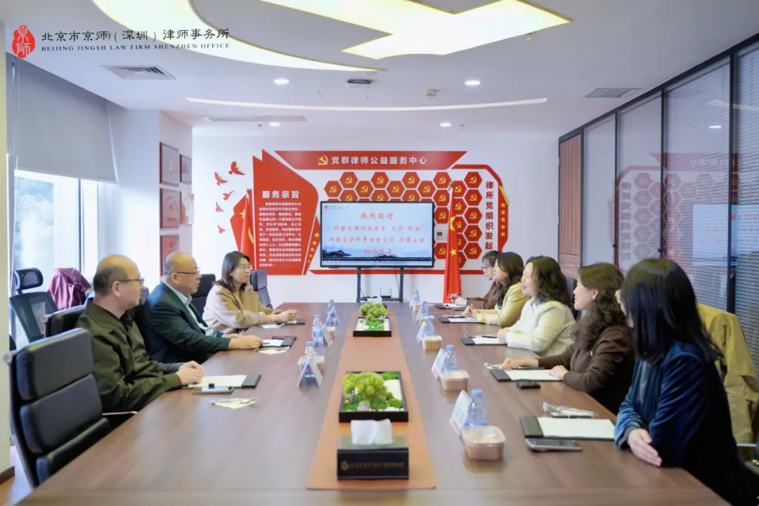 2025年12月14日上午,内蒙古自治区律师协会副会长张晓宇、京师呼和浩特分所主任覃金金、京师呼和浩特分所执行主任孙雷、内蒙古自治区律师协会婚姻家事专委会秘书长王莎、内蒙古自治区律师协会刘安到访京师深圳律所参观交流。京师律所管委会委员、执行副主任、京师深圳律所执行主任王旭,京师律所执行主任助理王辰,京师深圳律所常务执行副主任王昉热情接待。