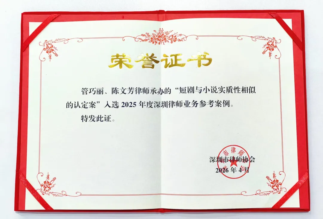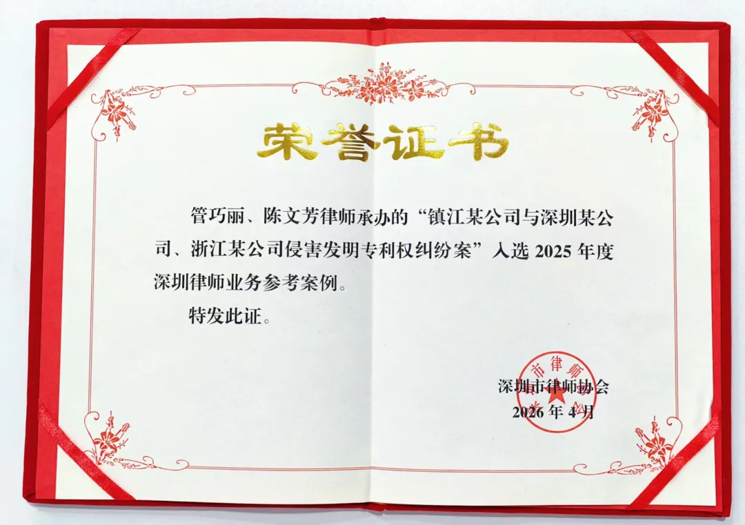 荣获2024年度深圳律师知识产权专利类、商标类、著作权权类十大典型案例;荣获2023年度深圳律师知识产权专利类十大典型案例;荣获2022年四川省、成都市十大知识产权司法保护典型案例;荣获2022年中国法院50大典型知识产权案例。
