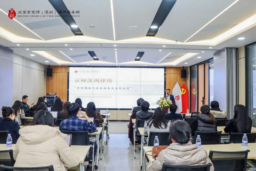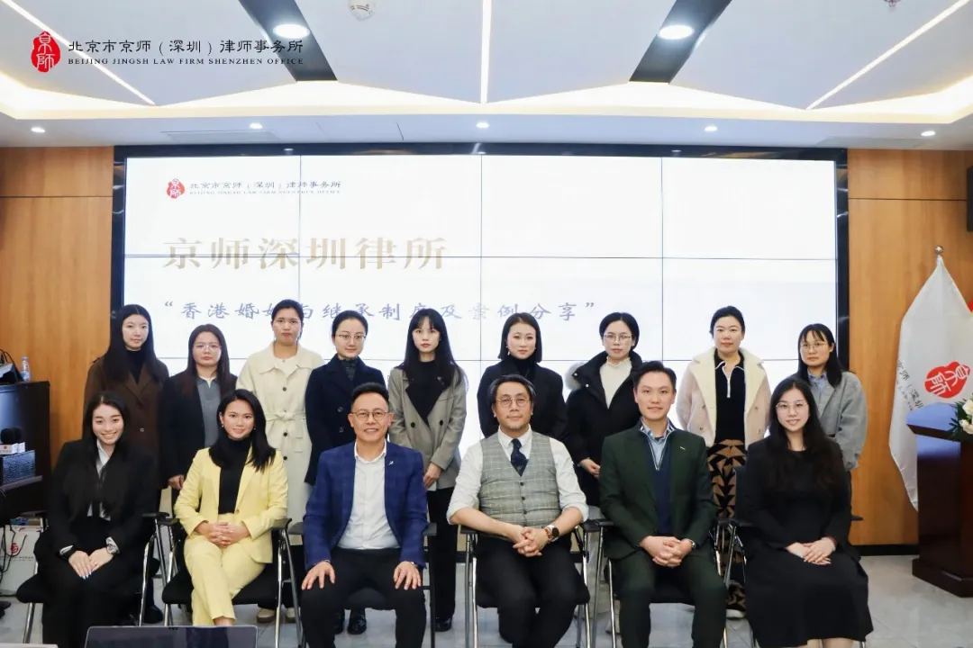 2026年1月21日下午,京师深圳律所家族传承和财富管理中心在律所五楼多功能厅成功举办“香港婚姻与继承制度及案例分享”专题讲座。本次活动特邀香港律信大律师事务所周伟雄大律师及高叶律师行合伙人王铭泽律师担任主讲嘉宾,从香港律师的角度分享香港婚姻与继承制度及案例,系统解析两地相关法律制度异同,助力内地律师及客户进一步厘清跨境婚姻、继承事务中的法律适用与实务衔接。